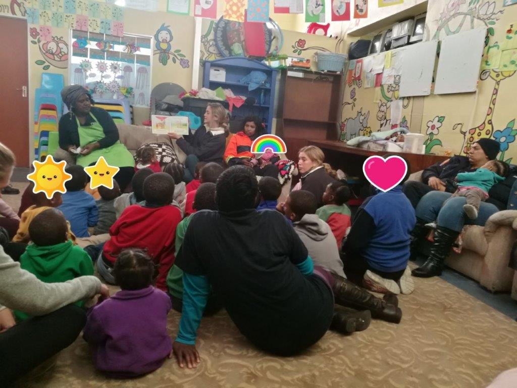 As young as they are they sing the song "clean up, clean up, everyone clean up" and it is so inspirational to see how every little child contributes to the excercise. They then sit on the mat very quietly and have their story time - the volunteers reads a story to them, they engage having to point out who the characters are and their favourite is when they talk about fruit and eating an apple/orange/banana in the story and the children are then offered that fruit. The squeals of delight as they connect the fruit in the story to the fruit in their hands.