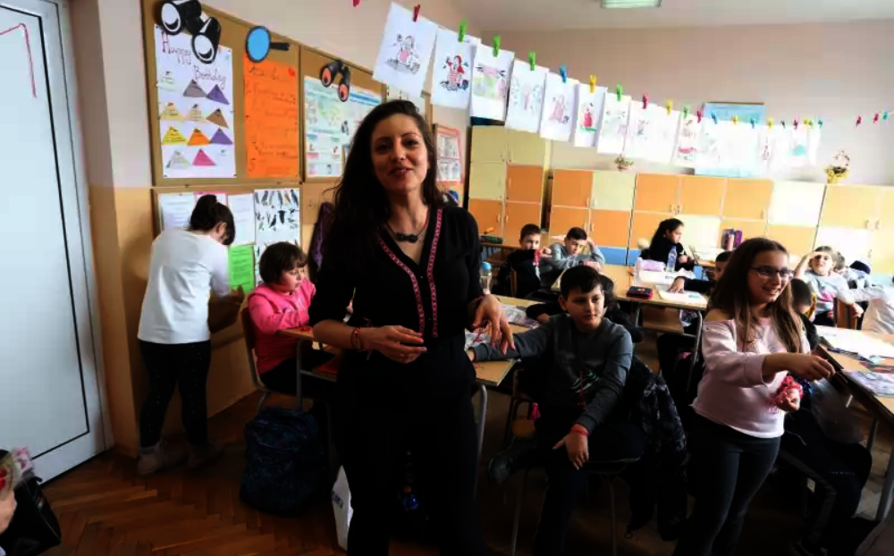 Noise, commotion, chaos, and kids are running back and forth. Such is the usual sight in Bulgarian schools, especially during break times. However, in Tsvetomira’s classroom, the feeling is more atypical – one of calm and light, perhaps emanating from the many children’s drawings hanging on the walls.