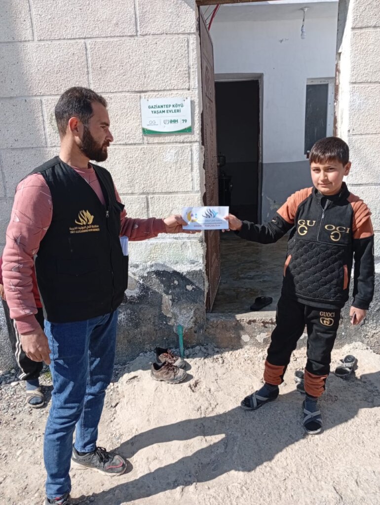 Thanks to your generous contributions, we were able to distribute financial sponsorship to the orphaned child Ma'moun, who lives with his mother and younger brother Mohammed in one of the shelter centers on the outskirts of Jarabulus city in northern Syria.