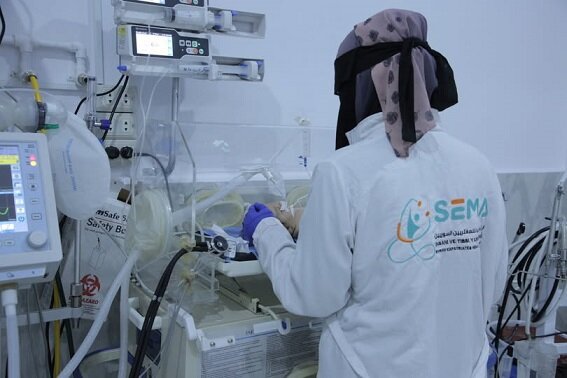 Baby Enad was born prematurely at 31 weeks, weighing only 1.6 kg at a SEMA hospital in Syria. He struggled to breathe due to severe respiratory distress and a rare nasal condition.