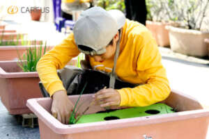 provide an art therapy session with planting, painting, and multisensory activities for holistic enrichment by month.