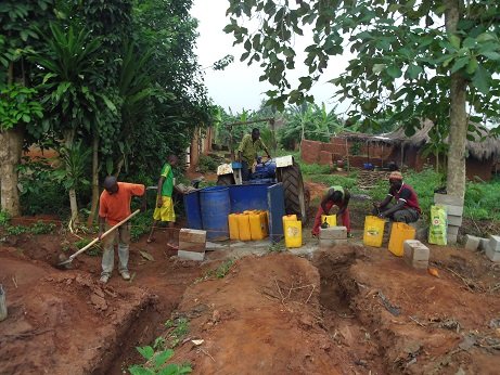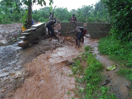 It had been decided that the Centre – Adjidole – would best be situated within a central area of the village for the safety of the children and to give them access to schools and community playing fields. Land for sale was not easy to find and natural water courses needed to be diverted. Now achieved!