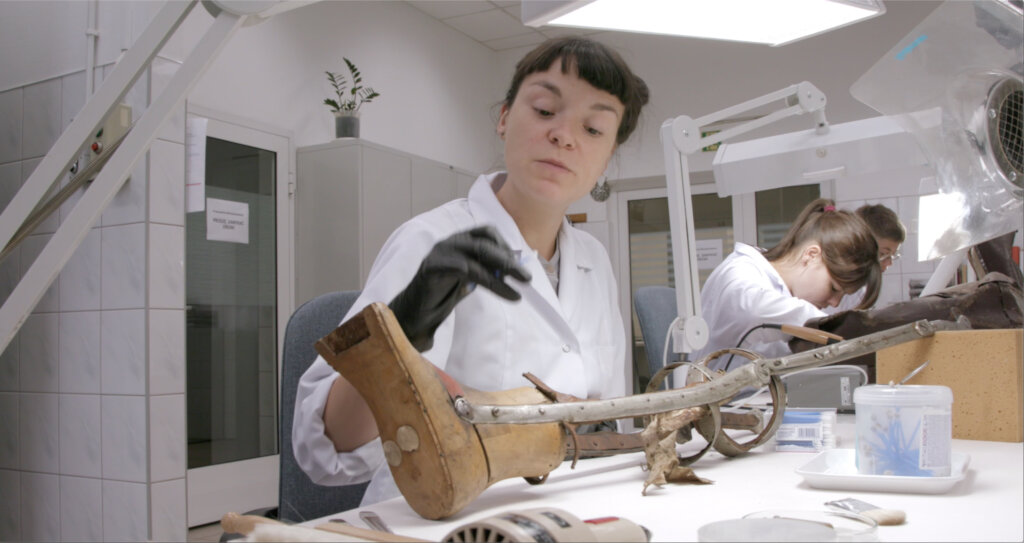 Meanwhile, the structures of Auschwitz and Birkenau pose another conservation challenge. The film features Agnieska Tanistra-Rozanowska, who describes the sole focus on straightening the walls of Birkenau’s brick barracks, which were constructed under poor conditions by Soviet prisoners of war. Agnieska estimates that even this limited conservation work will take 25-30 years.