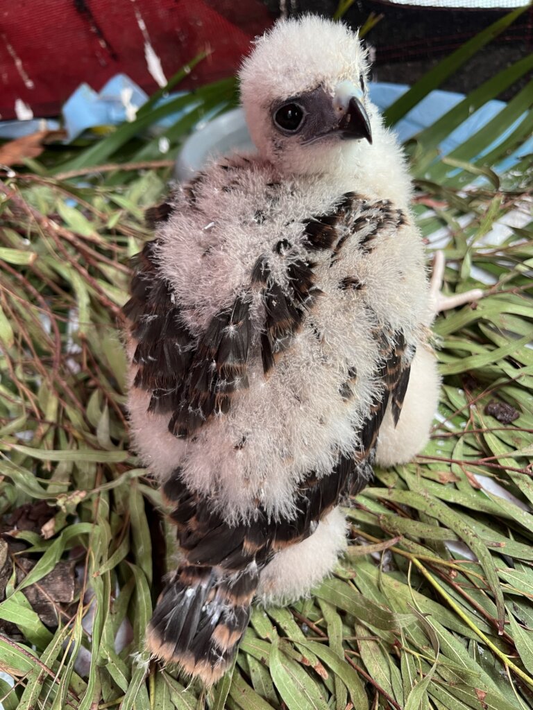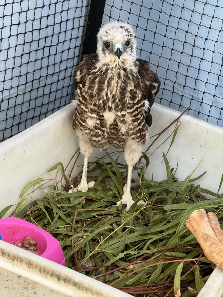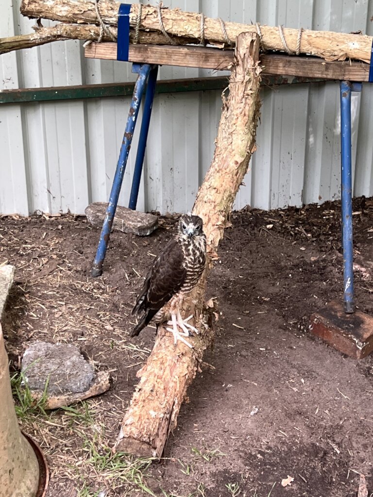 The journey was remarkable — from incubator, to carry cage, to outdoor soft crate, then into a small aviary, and finally on to the rehabilitation facility. At first, no one was certain what type of goshawk it was. But as the feathers developed, it became clear that this little survivor was a Brown Goshawk.