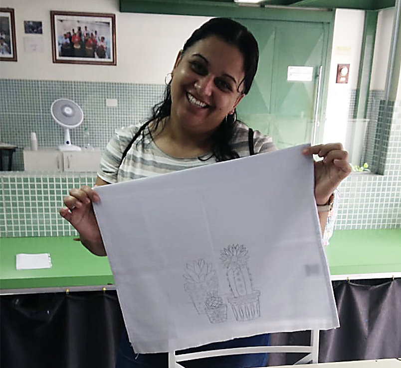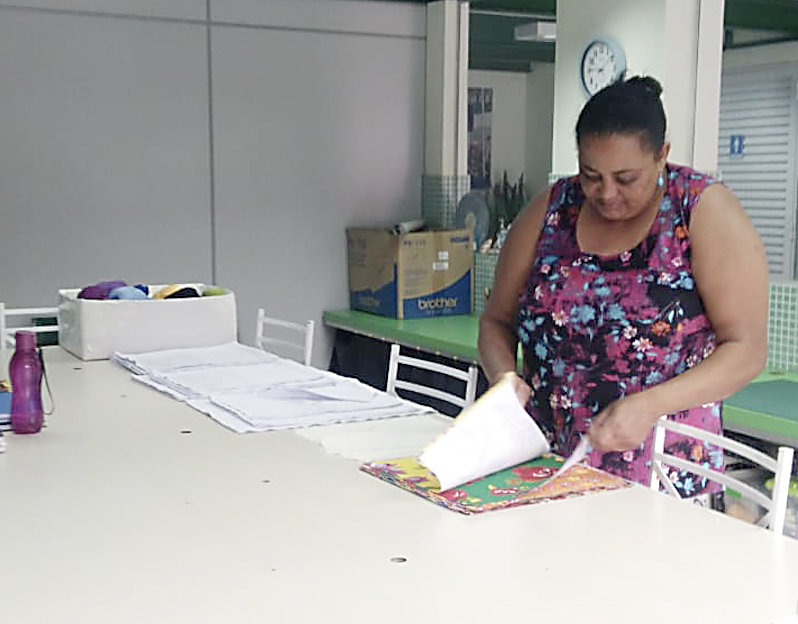 This week the women are cutting out masks for the children and young people from ACER’s community involved in sporting activities, ready to start sewing next week. They are also making up the items that they embroidered during the quarantine period at home for pre-Christmas sales and events, which will be held online. Some of them tried out the new machines, which include an overlocker and fabric cutting machine.