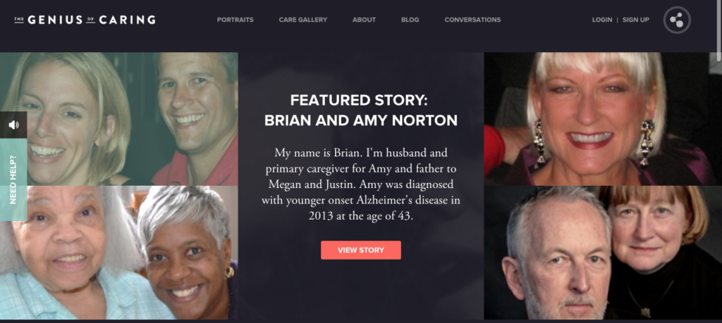 The Genius of Caring is designed to support caregivers and to provide students, healthcare professionals and others with a glimpse into the caregiving experience. We seek to feature the wide range of family caregivers and those living with caregiving intensive diseases.