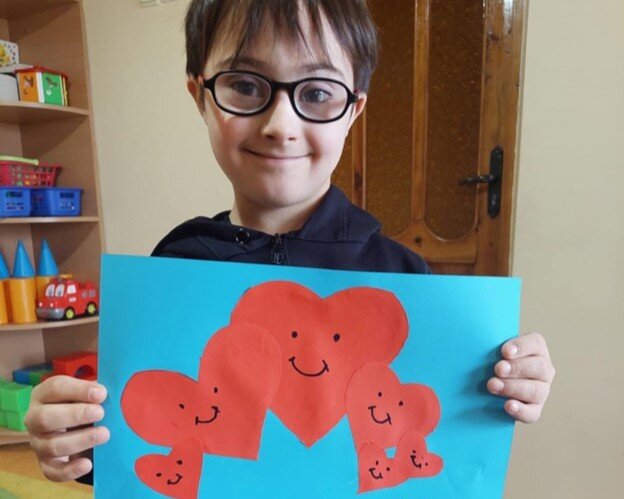 Samuel, a 9-year-old boy with Down syndrome, from Calarasi, is absolutely full of energy and curiosity. He is a cheerful, affectionate and curious child. He loves horses and could spend hours looking at pictures of them or listening to stories about horse adventures. We can see that he has leadership skills: he communicates with the other students with gestures or sounds, and he wants to be understood and appreciated. During games, he likes to be listened to, and when he feels that someone is paying attention to him, he gets even more excited.