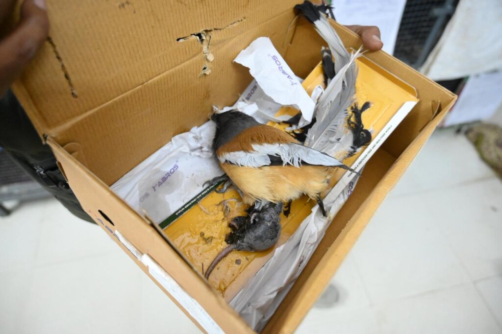 Glue trap is a common way to get rid of the mise in our urban set up. These traps are not only inhumane but equally dangerous for other animals and birds. We received a beautiful treepie bird stuck on a glue trap with a dead mouse. Its assumed that the glue trap was discarded on the road with the dead mouse and this bird was stuck when tried to feed on that dead mouse.