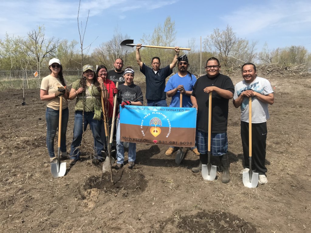 White Earth Nation: FTPF partnered for the first time with the renowned indigenous rights group Honor the Earth to plant 100 fruit trees at three locations across the reservation, including a behavioral health center, indigenous-based school, and Honor the Earth's headquarters. Their founder and famous environmental activist leader Winona LaDuke began the planting by blessing the orchard through a prayer for past, present, and future environmental protectors, reminding us all of the rich histories of food cultivation that must be carried on as we fight for modern Native peoples' right for food sovereignty and health.