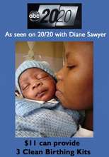 Provides 3 emergency birth kits, including a bar of soap, clear plastic sheet, razor blade, an umbilical cord tie, cloth and latex gloves to help deliver babies safely in crisis situations.