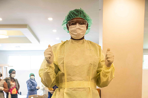 Hiwot's main priority was her safety and the safety of her baby. Now, Hiwot and her husband are living with neighbors from Tigray in a camp for displaced people. UNFPA midwives are in the camp providing prenatal care, safe delivery care, and family planning. Hiwot has received a UNFPA emergency birth kit to ensure that she and her baby survive childbirth.