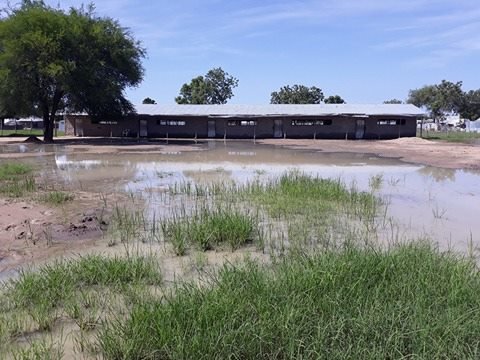 Sunlight Primary School in Bor was one of the schools overrun by rising water. Four of nine classrooms became unusable. After the community came together to clean out the flooded, mud strewn classrooms, more rain fell and another 3 classrooms were again flooded. All of the outdoor latrines used by the 290 students collapsed, no longer usable. Now that classes have resumed, all students must use the teacher and staff latrine, the only one remaining. The community is coming together (parents and neighbors) to help the school regain its footing. They are planning to build new latrines and to construct levies around the classroom buildings to better protect them against future flooding.
