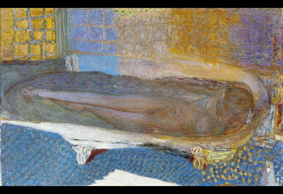 This is a commentary on a famous work by Pierre Bonnard entitled Nude in the Bathtub painted in 1936 :
