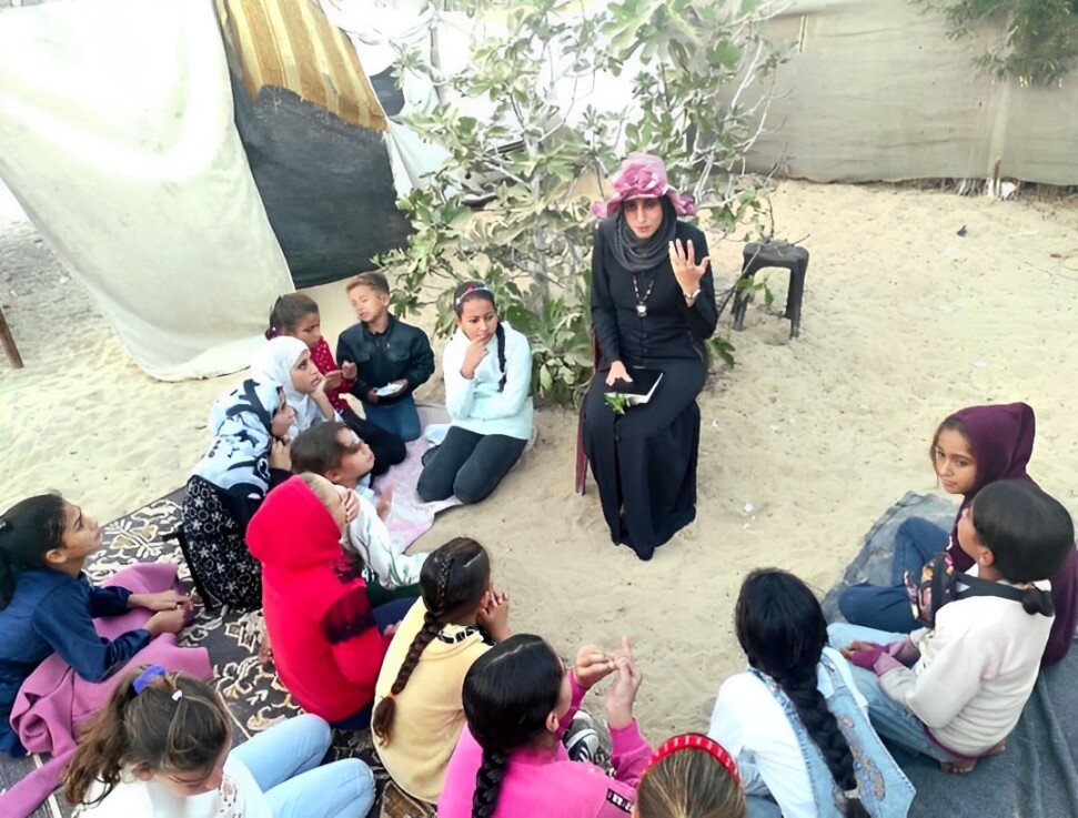 As reading helps children express their emotions in a positive way, WLR Ambassador Hiba Abed in Gaza discovered this benefit firsthand and conducted a read-aloud session in a tent. She describes these sessions as a source of "spiritual nourishment" for children, helping them cope with the challenges of war and reinforcing core values despite their difficult circumstances. Hiba was deeply influenced by the philosophy of We Love Reading, emphasizing its role in instilling values, managing emotional expression, and shaping children's behavior. She shares, "Children in Gaza are born into a reality where even basic needs are scarce, but we cannot abandon our beliefs. The meanings of things have changed for them; rain, once a symbol of joy, has become a source of fear due to flooding. This is just one example of how their perceptions have shifted."