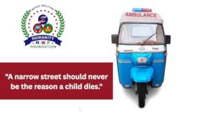 Sponsor a Rickshaw Ambulance Fully funds the purchase, equipment, and launch of one rickshaw ambulance - a mobile lifeline serving hundreds in need.