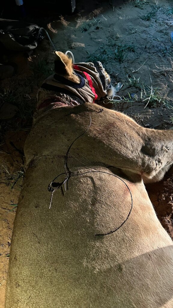 The reason for collaring lions, hyenas and possibly other species is due to them inhabiting an area where they are at a very high risk to being killed by poachers. We recently lost six spotted hyena and three african wild dogs in snares in this area and we had to remove snares from four lions in the same area, while we could not locate another lion which is believed to have died.