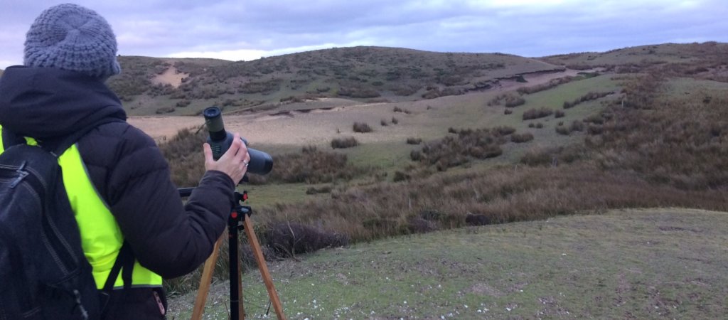When surveying wombats, our volunteers use binoculars, spotting scopes and spotlights at night to look for signs of hair-loss on the sides of the wombats. Interestingly, hair-loss on the backside of the wombat is not necessarily indicative of mange, as wombats will often take a bite at the rump of a nearby wombat as a territorial behaviour. When hair-loss is noticed, volunteers classify the severity of the hair-loss on 4 segments of the animal (rear, side, front, and head) on both sides of the body. The scats (droppings) collected from each site are sent off to the lab for analysis where parasite egg counts will take place alongside the DNA testing.