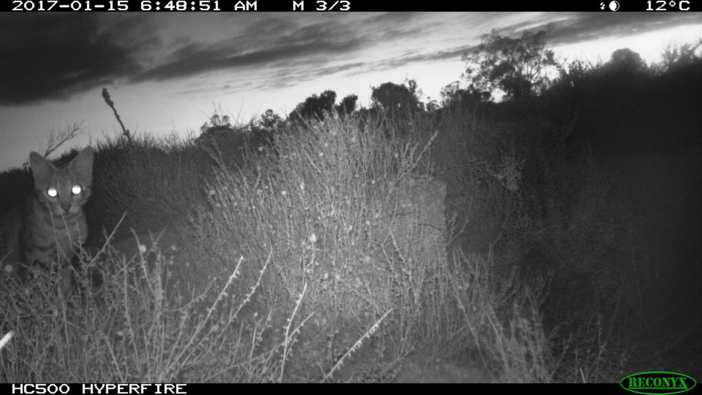 Since our last report, we have installed a remote sensor camera at a large warren to gain clear evidence that we have feral cats at Brookfield Conservation Park. We have seen feral cats on the property, but only had anecdotal information that the cats were utilising the same burrows as the wombats. With the camera in place, we recently captured clear evidence of this cohabitation, which was identified by volunteers searching through all the images recorded. As a result, we can now implement a program for the humane removal of these threats. The camera also captured other useful images of the resident emus and very inquisitive wombats!