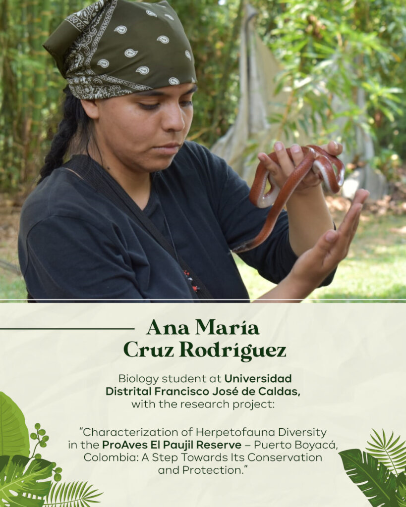 We are excited to share our most recent updates from our project, Support Women Scientists Saving Endangered Wildlife! In 2026, we are reintroducing our scholarship program for women scientists alongside ACHerpetología, the Colombian Association of Herpetology. We announced this newest partnership at the 4th Colombian Herpetology Congress held in Santa Marta at the beginning of December. We will be offering five scholarships to young Colombian women researchers studying amphibians and reptiles. These scholarships are poised to strengthen women’s participation in conservation science; they will cover costs associated with research such as fieldwork, educational materials, monitoring supplies, local transportation, or strengthening technical capacities.