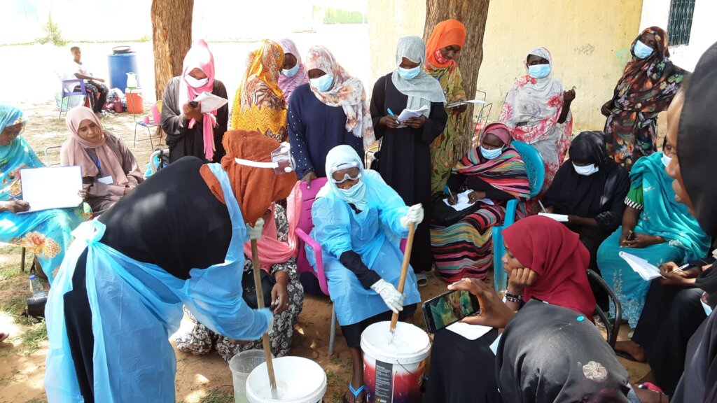Throughout this project, displaced women will overcome poverty, adopt sustainable means of income, and improve livelihood of their families. We executed two successfully training to ensure capacity building, knowledge and technical skills for displaced women. In August 2021, was our first training, we trained 60 women from four displaced camps in South Darfur, in three workshops. DWN has provided incubator program to enable the participants to access to capacity building to enable them to make high quality bar and liquid soap and detergent. Then, the participats moved to produciton stage. They have made three types of soaps, while our technaical support available with them throughout the process of making soap. Now, they have used themselves and in their negborhood. They were happy and they couldn’t believe they were able to make soap that they couldn’t afford to purchase , but, now, become avialeable to their families.