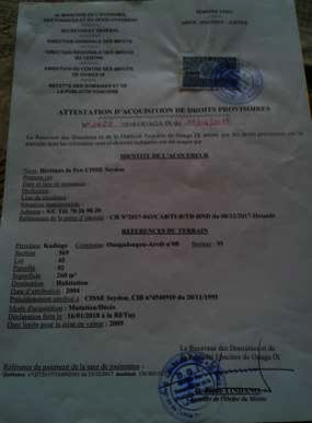 While we wait for the final document ( PUH) the tax service has given us a procurement letter which will allow us to carry out all of the remaining necessary actions of the said plot for the benefit of Tigoung Nonma. They have also provided us with a legal certificate which states that the property purchase has been completed.