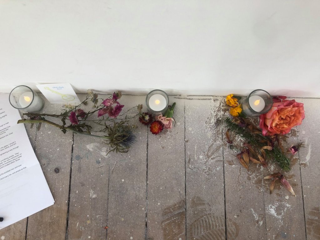 Project Space is open to the public and artists are encouraged to be in dialogue with visitors about their work. Many visitors would share stories of loss back with us after engaging with the material. For our final exhibition, we decided to formally invite visitors to participate in the creation of a Remembrance Wall (pictured below) and honor loved ones who have passed. Over a two week period, visitors added photo transfer images to a wall and wrote letters, brought photos, objects, and flowers. It added a very emotionally